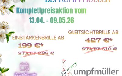 Unsere Frühjahrsaktion startet am 13.04.2026. Es wartet ein tolles Angebot auf Sie mit einer großen Auswahl an modischen Fassungen.